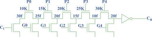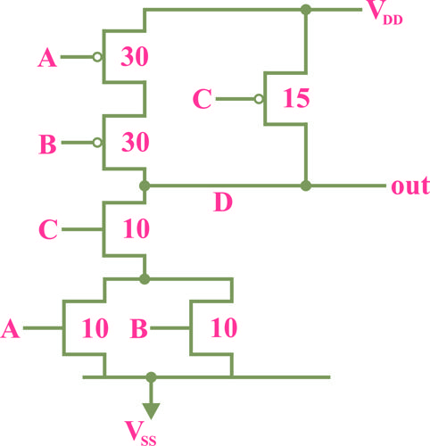 در شکل زیر و است. اگر تأخیر وارونگر 100psec باشد، تأخیر مدار چقدر خواهد شد؟