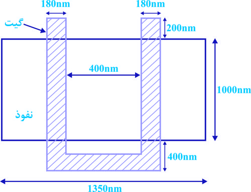 اگر مقدار خازن گیت در واحد سطح برابر با باشد، مقدار کل خازن گیت در شکل زیر چقدر است؟