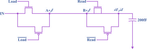 شکل زیر یک لچ پویا (عنصر ذخیره داده) را با یک پورت دستیابی که خروجی لچ را به گذرگاه متصل کرده است. نشان میدهد. چنانچه لچ مقدار صفر را ذخیره کرده (در گره A) و گذرگاه در آغاز LOW باشد، هنگامی که سیگنال Read را فعال کنیم، چه اتفاقی میافتد؟